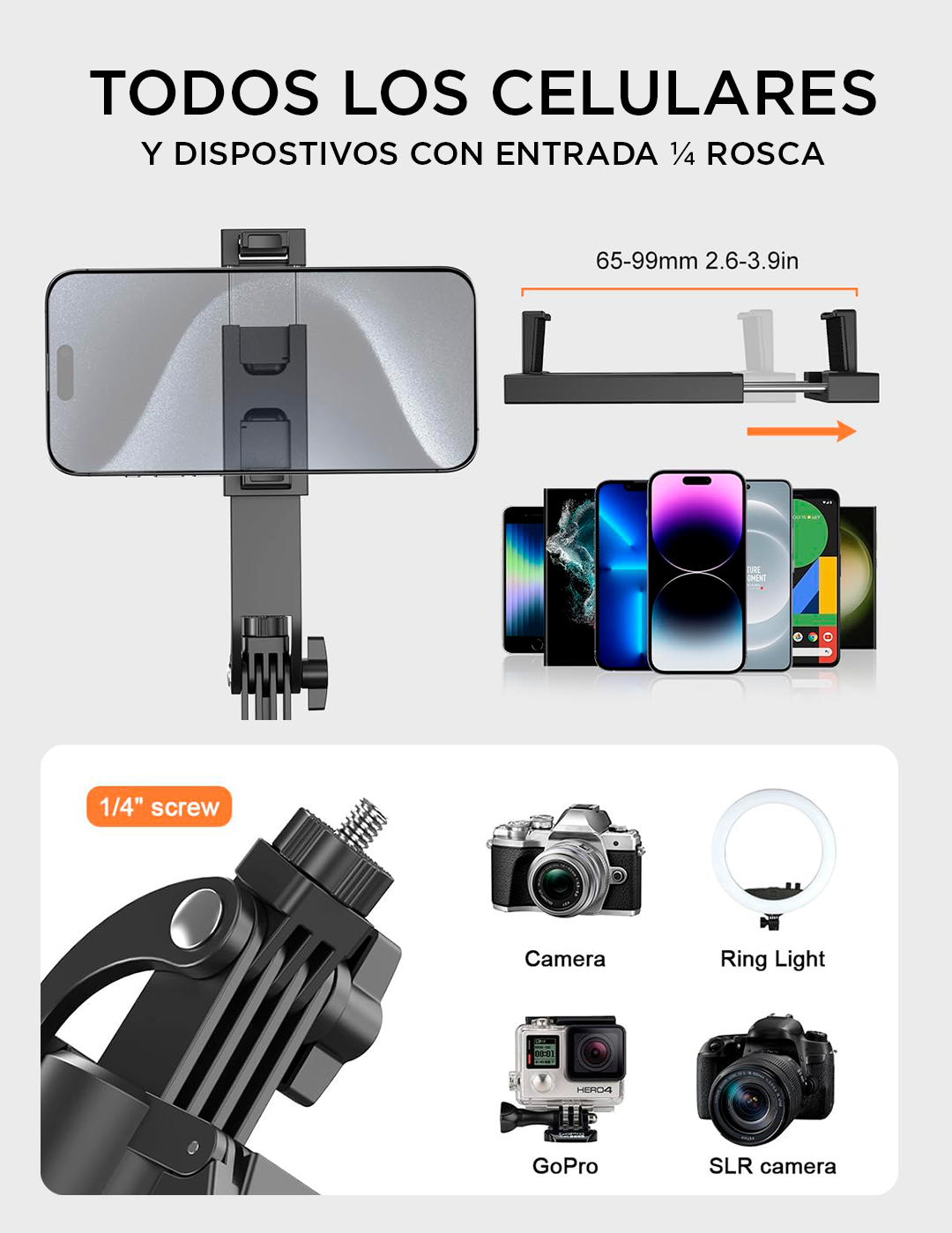 Con nuestro Trípode con Seguimiento Inteligente lograrás tomas estables, enfoque automático y libertad total para grabar sin ayuda.😍